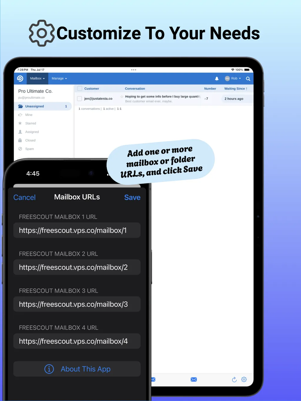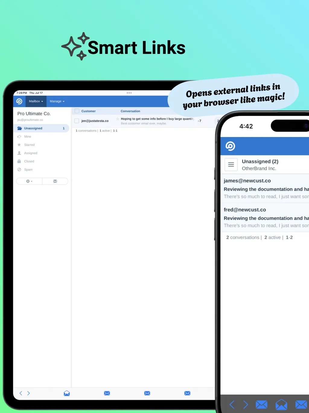 Instantly switch between multiple mailboxes, get notified of new activity, and stay on top of support tasks wherever you are.